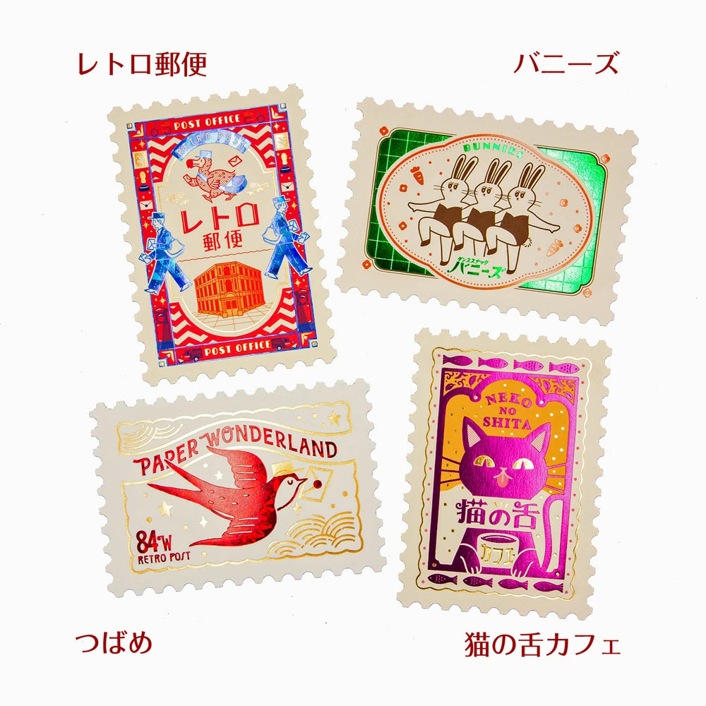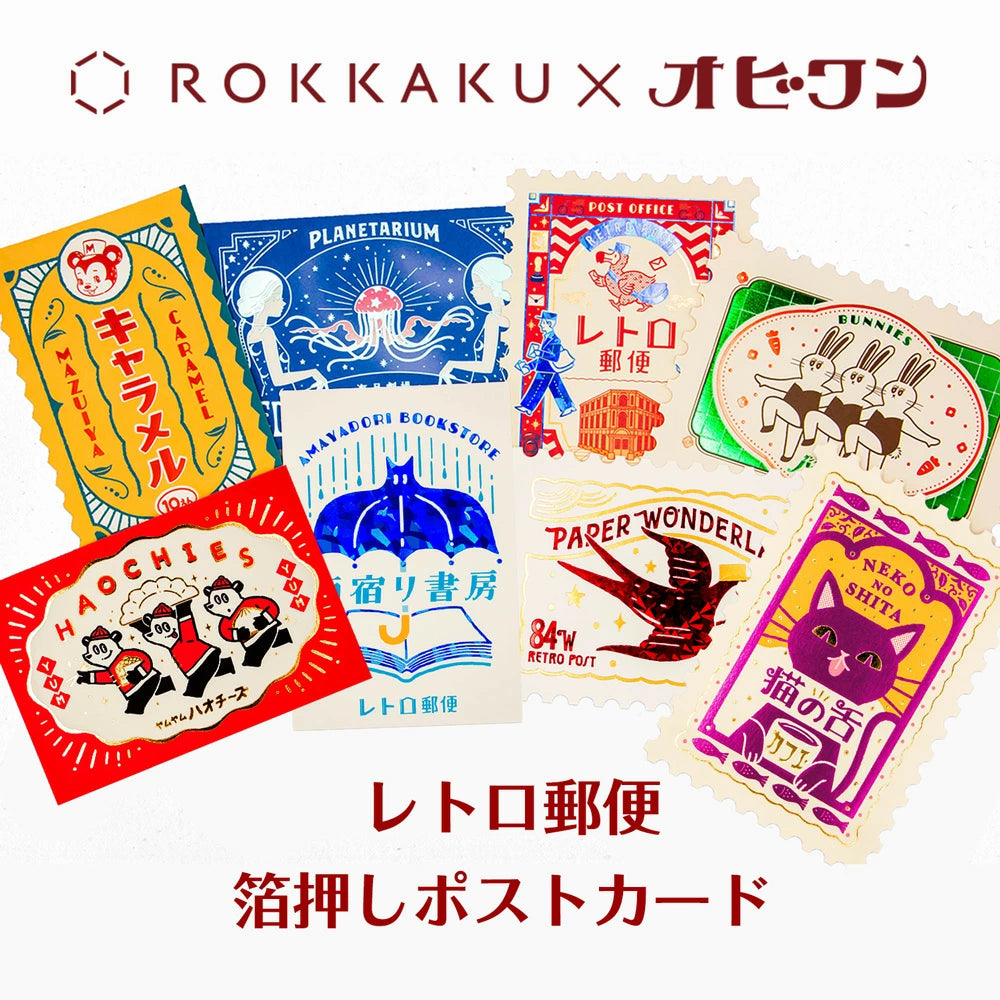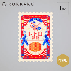 ROKKAKU x ob1toy Stamp-Shaped Foil Postcard - Retro Post Office